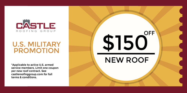 U.S. armed service members, mention this coupon before signing your new roof contract to receive $150 off a new roof installation. Thank you for your service & the sacrifices you make to protect our country.